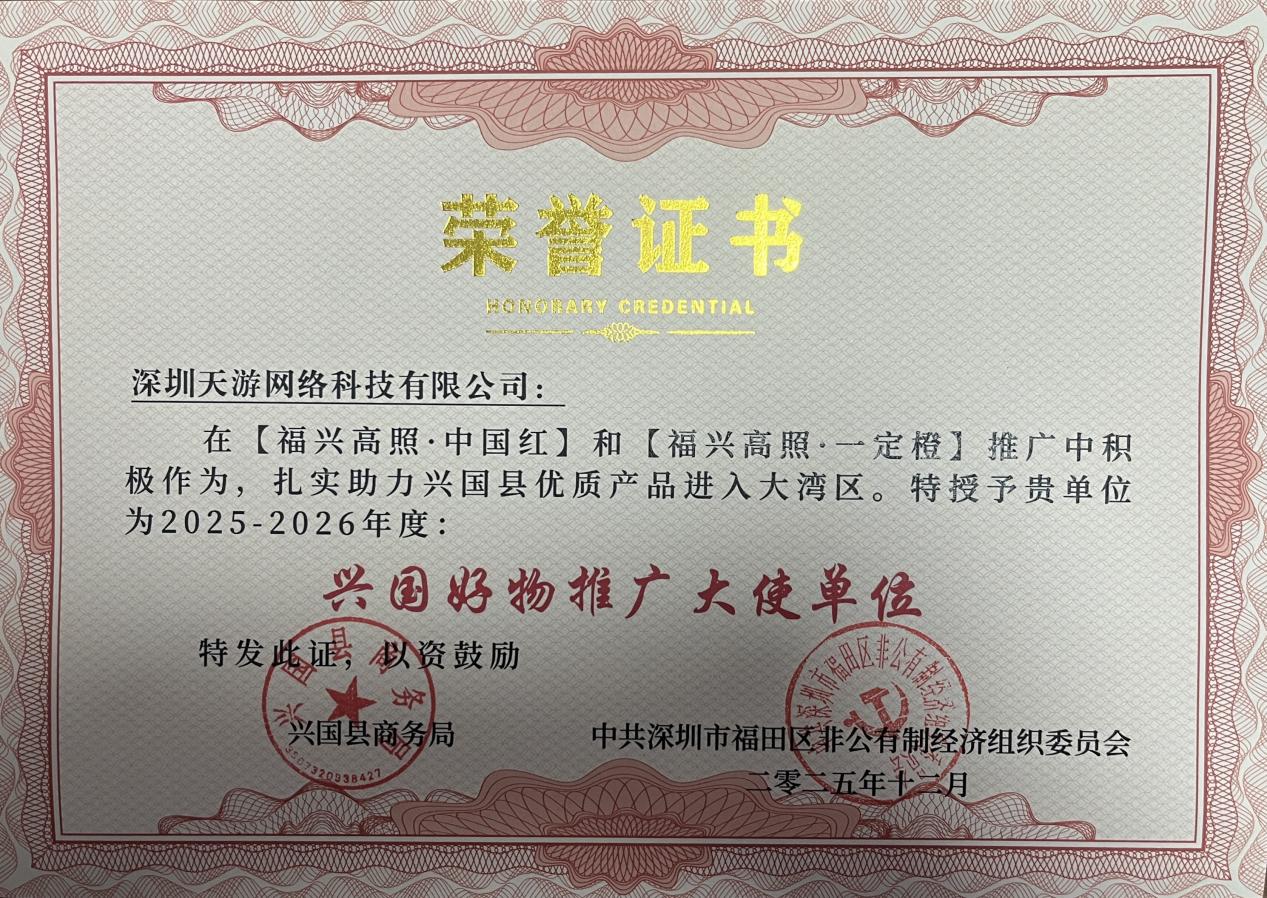 近日,亿万甄选党支部凭借在乡村振兴对口帮扶工作中的积极作为与突出成效,荣获兴国县商务局、福田区非公党委联合授予的“兴国好物推广大使单位”荣誉证书,这一荣誉既是对支部践行国资控股企业社会责任的肯定,更是对“党建引领+消费帮扶”模式的认可。