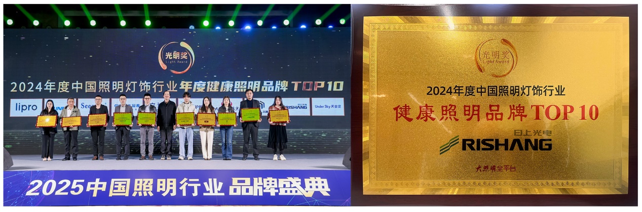 日上光电荣获2024年度健康照明品牌TOP10荣誉