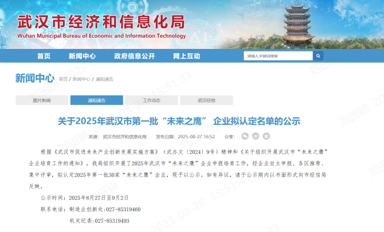 近日,武汉市经济和信息化局对2025年第一批“未来之鹰”企业拟认定名单完成公示,万润科技旗下湖北长江万润半导体技术有限公司经过规范的企业申报、推荐和集中评审流程,成功入选。