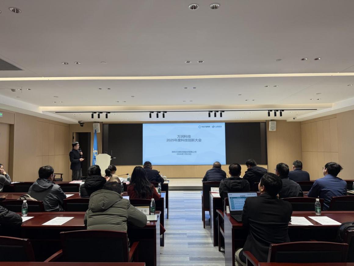 2026年1月23日,万润科技召开2025年度科技创新大会,公司科技创新委员会成员及各子公司研发团队代表共同参会。本次大会围绕“科技创新奖评审”与《2025年万润科技重点研发项目调研白皮书》发布两大核心议程展开,既全面展示了公司年度科技创新成果,又为后续科研项目规范化管理、高效化推进明确方向。